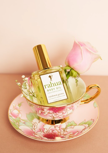 Capric Caprylic Triglyceride (plant derived), Coco-Caprylate (plant derived), Oenocarpus Bataua (Rahua Ungurahua) Oil, Plukenetia Volubilis (Sacha Inchi) Oil, Ilex Guayusa Oil, Tocopherol (Vitamin E), Mauritia Flexuosa (Morete) Fruit Oil, Bursera Graveolens (Palo Santo) Oil, Organic Punica Granatum (Pomegranate) Seed Oil, Organic Rosa Canina (Rosehip) Fruit Oil, Lavandula (Lavender) Officinalis Oil, Eucalyptus Globulus Leaf Oil, Organic Vanilla Planifolia Fruit Extract.